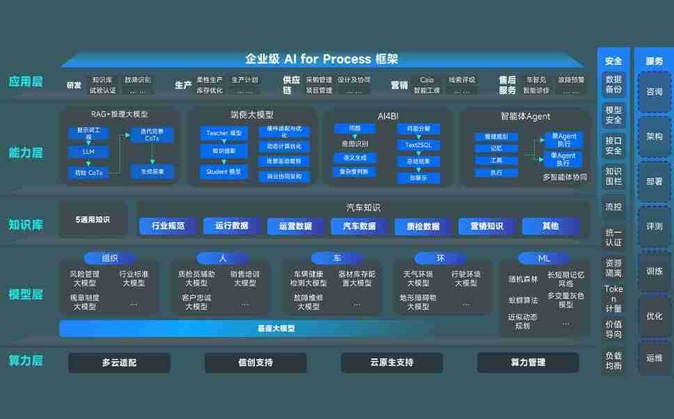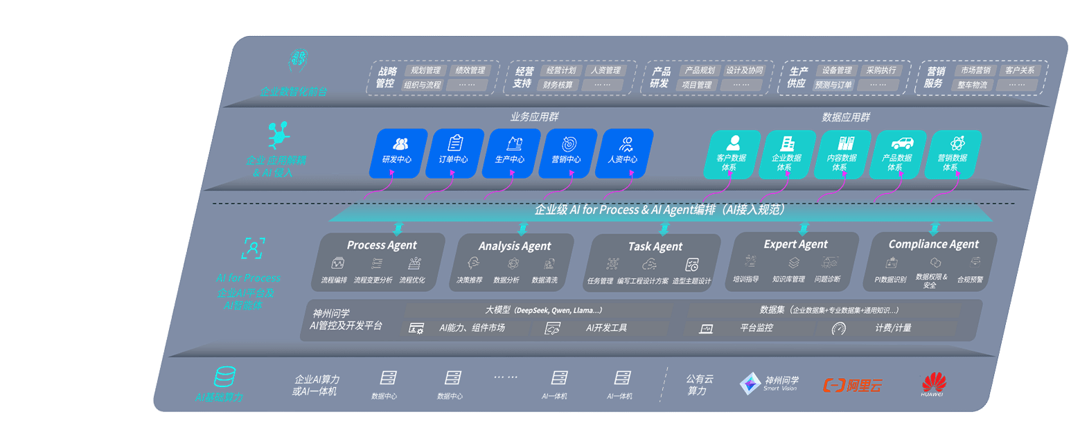 端到端的一站式AI工作空间深度融合了从企业战略规划到日常经营的全流程业务板块,,,定向解决车企内部领域多、、、、部门多、、链条长、、、场景碎片化等难题,,支持车企快速构建以AI为核心的生产力写作体系,,,,实现任务执行与AI能力的无缝集成与交互